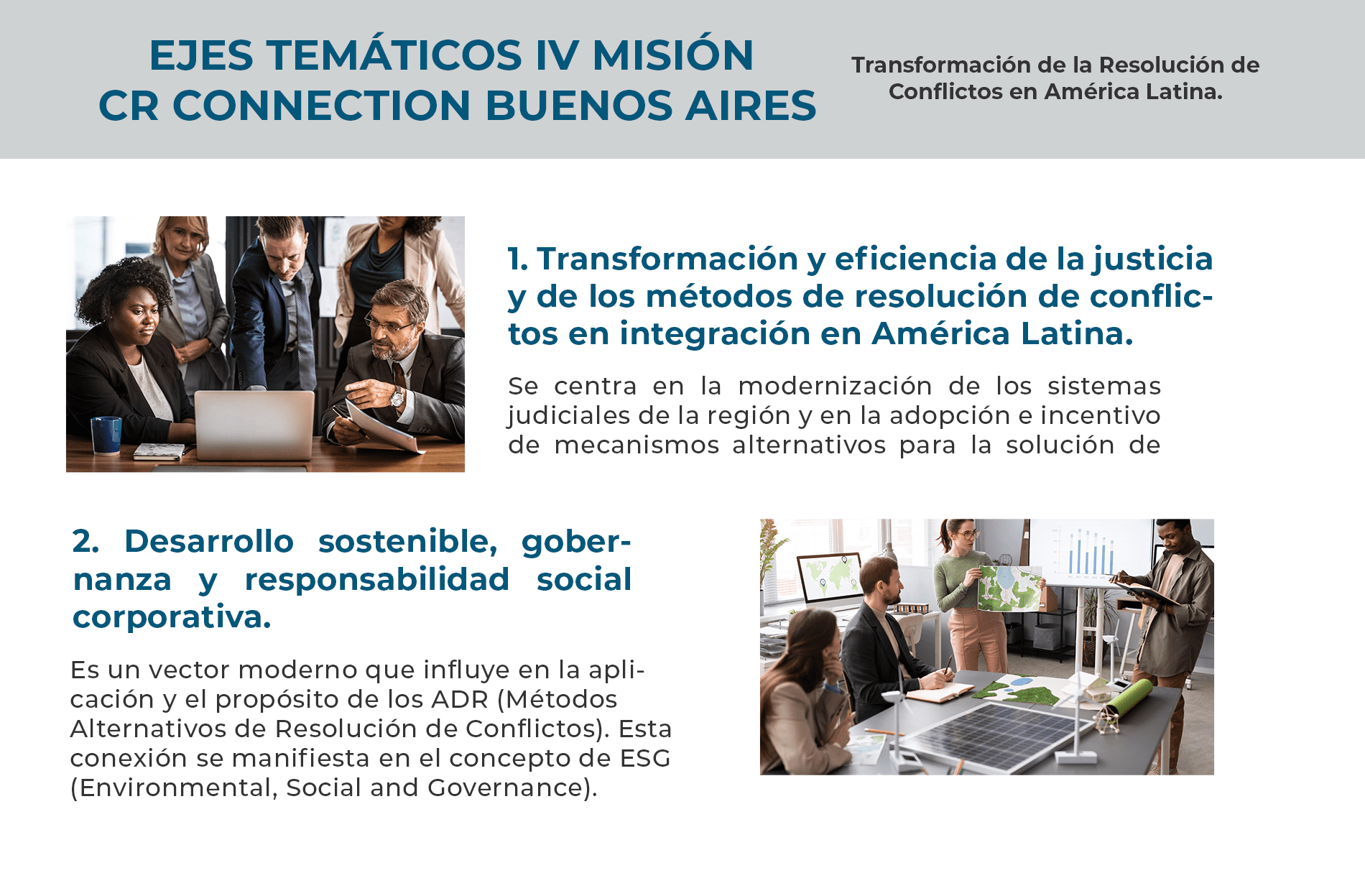 Es un Programa de Inmersión Presencial y Bilingüe con Traducción Simultánea enfocado en Mediación, Negociación y Arbitraje, con el tema central de "CONEXIONES ESTRATÉGICAS: RESOLUCIÓN DE CONFLICTOS EN LA ERA DIGITAL Y DESARROLLO SOSTENIBLE EN AMÉRICA LATINA".
